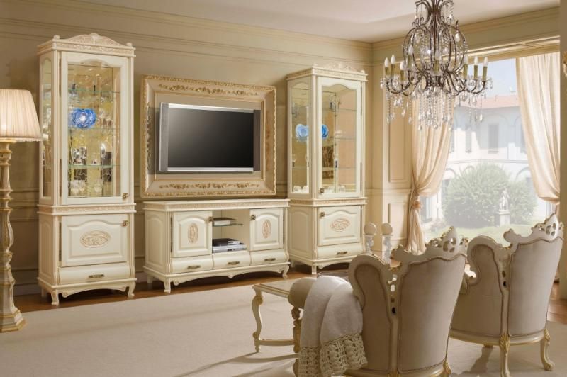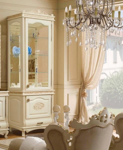 Гостиная "Флоренция" выполненная в стиле "барокко" – характеризуется роскошным дизайном, обилием декоративных элементов и множеством изогнутых линий. Резные декоративные элементы изготовлены из массива ясеня по уникальным эскизам, разработанным специально для коллекции "Флоренция". Поверхности декоров обработаны профессиональными мастерами вручную! Прозрачные части витрин, выполнены из прочного калёного стекла, украшенного изысканной алмазной гравировкой с применением технологии "кристалайз"!