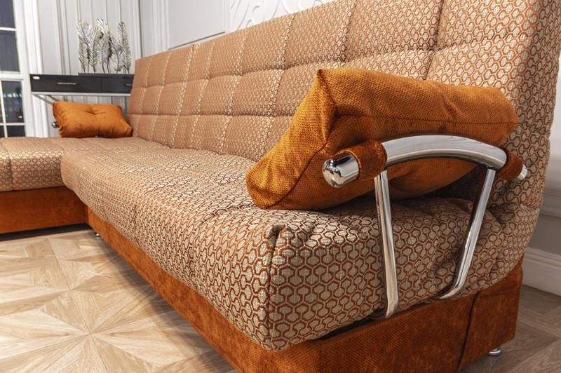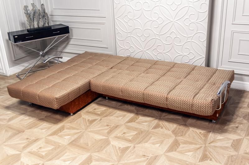 Угловой вариант модели «Милан» создан в одном стиле с прямым диваном. Отличительной чертой дивана являются стильные хромированные металлические подлокотники, специально подобранные под данную модель. По желанию клиента, можно установить один или два подлокотника. Либо вовсе приобрести диван без них, без потери комфорта использования. В диване используется механизм «клик-кляк», который давно известен и популярен среди покупателей, и зарекомендовал себя как простой и очень надежный механизм. В разложенном виде «Милан» - это полноценная двуспальная кровать! Мягкий широкий матрас, ровное высокое спальное место дают возможность по настоящему отдыхать во время сна и восстанавливать силы. Это очень важно, ведь здоровый сон - главное условие хорошего настроения после пробуждения, чего нам порой так не хватает. Важно отметить, что оттоманка также снабжена механизмом трансформации, и ее можно раскладывать отдельно от остальной части. Для данной модели возможна установка пружинного блока. В диване предусмотрено два бельевых ящика - в оттоманке и основной секции. Угол универсальный - оттоманку можно переставить самостоятельно в домашних условиях. Модель выполнятеся также в прямом варианте и может быть заказана в виде отдельной оттоманки. В зависимости от выбранного рапорта ткани, на чехле оттоманки возможно наличие стыковочного шва. Данный шов является технической необходимостью (конструктивной особенностью) и не является браком.