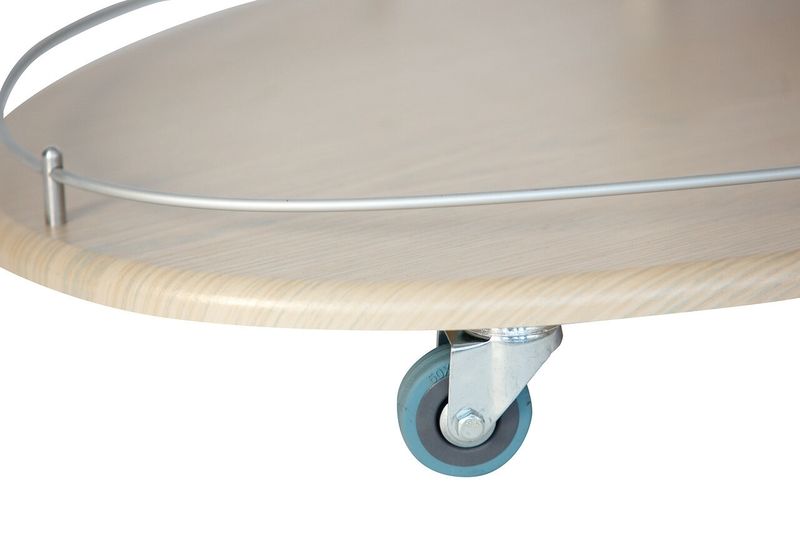 Сервировочный столик Брум с колёсами имеет компактные размеры. Выполнен из МДФ с хромированными металлическими деталями. Столик оснащен держателем для бутылок, удобной ручкой и колесами для бесшумного и легкого перемещения. Поставляется в разобранном виде, упакованная в гофрокартон. В комплект входит вся необходимая фурнитура и удобная инструкция для сборки.