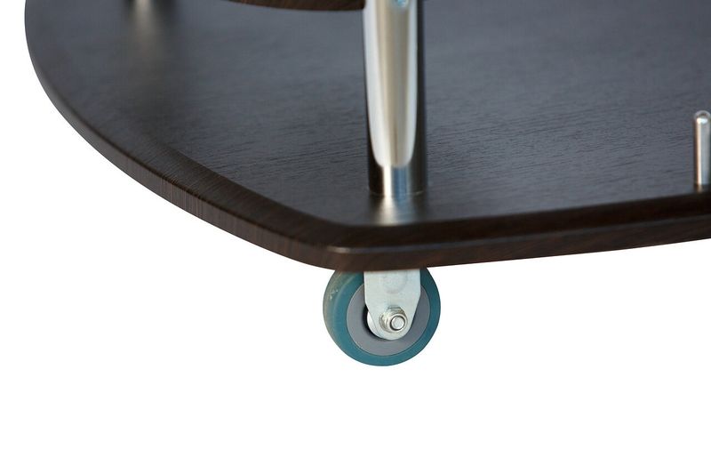 Сервировочный столик Эсперанс с колёсами имеет компактные размеры. Выполнен из МДФ с хромированными металлическими деталями. Столик оснащен держателем для бутылок, удобной ручкой и колесами для бесшумного и легкого перемещения. Поставляется в разобранном виде, упакованная в гофрокартон. В комплект входит вся необходимая фурнитура и удобная инструкция для сборки.
