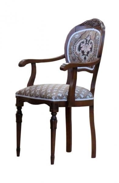 Элегантное классическое полукресло для дома. Выполнено из 100% массива бука. Резные элементы красиво украшают и придают изящество. Возможно исполнение в других оттенках дерева и ткани.
